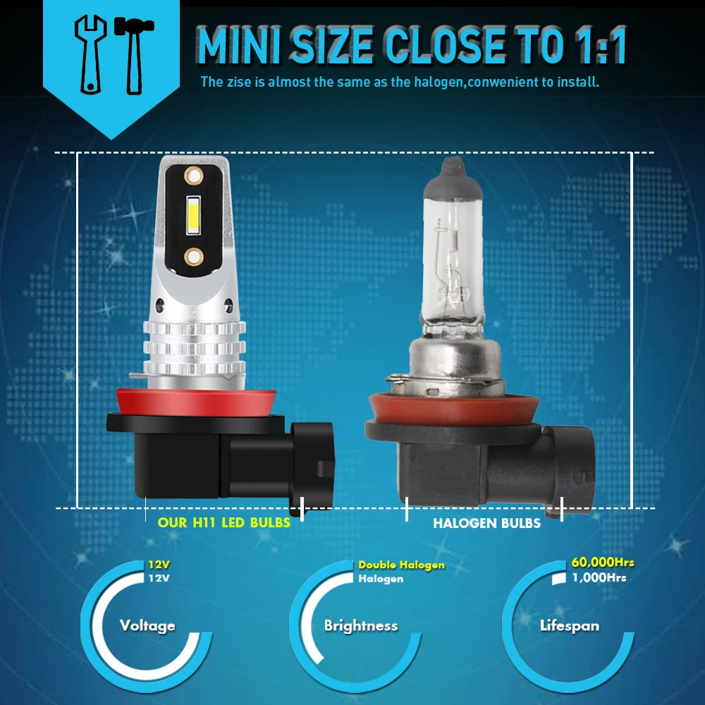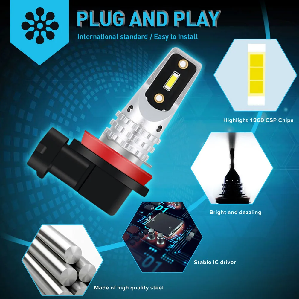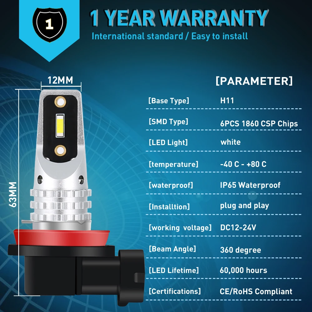 2X H8 H9 H11 Car H4 H7 LED canbus 9005 HB3 9006 HB4 6smd 1860chips LED Bulb Auto Fog Light 12V Car Driving Running Light 6000k