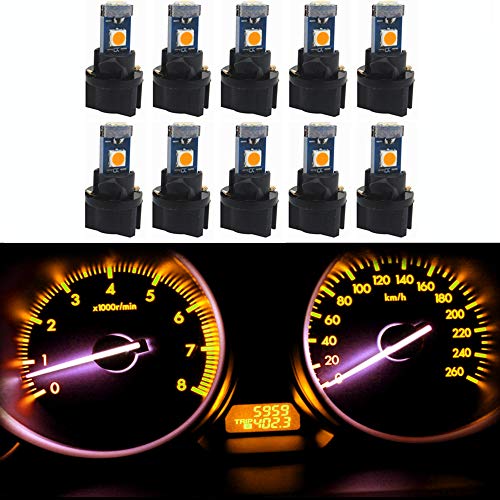 WLJH Canbus estremamente luminoso 3030 chip PC74 Twist Lock Socket T5 2721 73 74 LED lampadina per auto Cluster Gauge Dash Dashboard indicatore pannello luce lampada 12V giallo ambra -10 pezzi