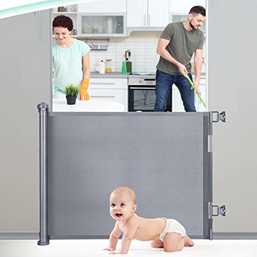 LSZE Cancelletto per Bambini Estensibile 0-150cm Aggiornato Cancello Sicurezza Bambini Cancelli per Cani Avvolgibili Larghi per Scale Interne ed Esterne di Corridoi Porte(Grigio)