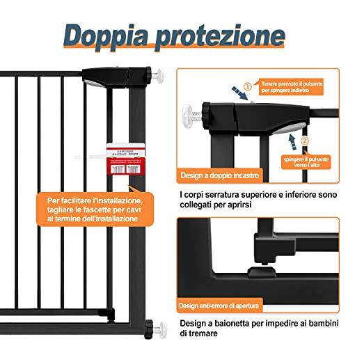 Cancelletto per Bambini Senza Foratura Cancelletto di Sicurezza Auto-Close Cancello Sicurezza Bambini Cancelletto per Cani da Interno Estensibile Nero 124-131cm