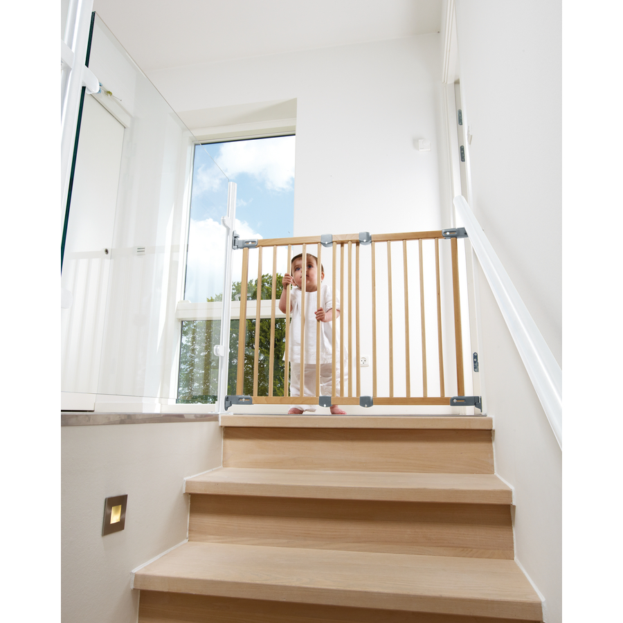 Dettagli del prodotto: Il Flexi Fit Wood di Baby Dan ® è un sistema di installazione unico ed estremamente flessibile per quasi tutte le aperture. I raccordi a muro possono essere angolati per adattarsi sia all'interno che all'esterno del telaio della porta. Il cancelletto di sicurezza può essere montato anche ad angolo Il Flexi Fit Wood è un cancello di sicurezza a parete che deve essere avvitato. Se montata all'interno del telaio della porta, la griglia si adatta ad aperture da 69 a 106,5 cm. Se montata all'esterno del telaio della porta, la dimensione massima è inferiore di circa 5 cm. Il Flexi Fit si apre in entrambe le direzioni e può essere azionato con una sola mano. Il sito Design rende la griglia ideale per l'uso nelle porte e soprattutto in cima e in fondo alle scale. È dotata di esclusivi raccordi di apertura a sgancio rapido a prova di bambino che consentono un rapido montaggio e smontaggio. Una volta montati i raccordi, è sufficiente regolare la larghezza della griglia per adattarla alla porta e farla scorrere nei raccordi. Dimensioni e materiale: Copre aperture da 69 a 106,5 cm Altezza (montata): 73 cm Materiale: legno Montaggio con trapano