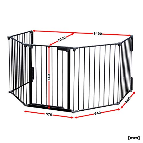 Cancelletto di sicurezza XL per camino 300 cm Barriera di protezione caminetto 5 elementi in acciaio