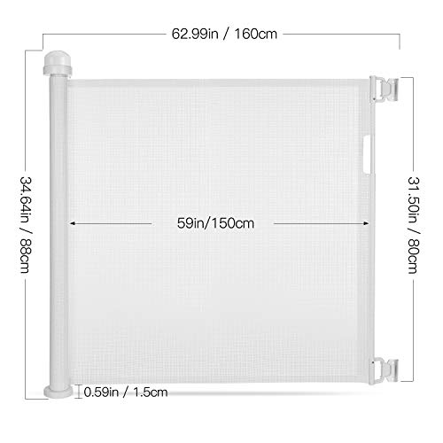 Cancelletto di sicurezza per porte 0-140 cm, estensibile, avvolgibile - con due set di materiale di montaggio, griglia espandibile per scale per bambini, cani e gatti