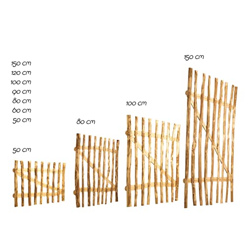 Set per cancello da giardino, nocciolo, 120 misure, 80-300 cm di larghezza, 80-150 cm di altezza, distanza tra i listelli di 3-5 o 7-9 cm, larghezza: 100 cm, altezza: 160 cm, 3-5 cm