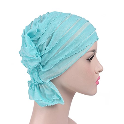 Il cappello turbante è uno stile classico alla moda, tessuto elasticizzato con volant in tessuto leggero, morbido, confortevole, traspirante, delicato sulla pelle, durevole, popolare tra pazienti cancerogeni e perdita di capelli