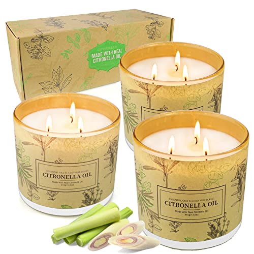 Candela Citronella, 3 Pezzi 380g Citronella Candele Per Esterno, Tempo di Combustione 300h Candele Citronella, Candele Profumate da Giardino, Candele Citronella, Regalo Compleanno Donna, Campeggio