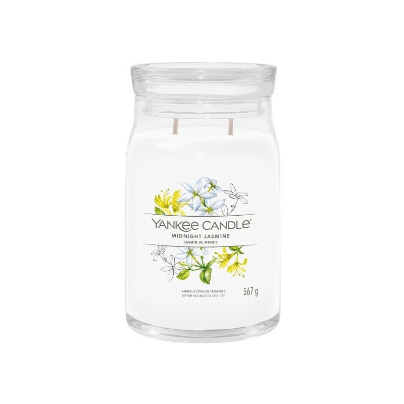 La Giara Grande Midnight Jasmine della Linea Signature di Yankee Candle ha una profumazione seducente e intensa. La sua Fragranza Fiorita richiama il profumo dei gelsomini acquatici, del caprifoglio dolce, dei neroli e dei fiori di mandarino. La candela è prodotta con cera di soia di alta qualità che garantisce un aroma forte e duraturo: la giara di vetro con 2 stoppini dentro cui è riposta preserva e contiene la fragranza. Gli stoppini sono realizzati con fibre naturali al 100%, rigorosamente testati per garantire una combustione ottimale. Il formato Giara Grande offre una lunga durata: da 60 a 90 ore di piacevole profumazione. Maggiori informazioni Yankee Candle Signature Candela in Giara Grande Midnight Jasmine 90 Ore: Codice prodotto: 1630688E Formato: Grande Peso: 567 g Dimensioni: 9,3 x 15,7 cm Durata: da 60 a 90 ore Profumazione: Midnight Jasmine Note di Testa: Arancia, Melograno, Frutto della Passione Note di Cuore: Fiori Bianchi, Ciclamino, Rosa Note di Fondo: Black Currant