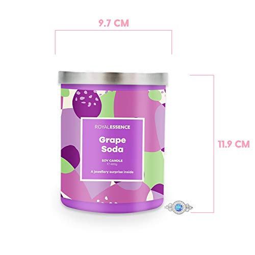 PROFUMO DI LUNGA DURATA: con un tempo di combustione fino a 90-100 ore e cera di soia di alta qualità, una candela Royal Essence è il modo perfetto per rendere la tua casa un po' più speciale. Profumi di qualità elevata che riempiranno ogni stanza della tua casa con l'aroma delle miscele e fragranze uniche di Royal Essence. Dopo aver acceso la candela, i gioielli inizieranno ad apparire dopo circa 10 ore di tempo di combustione.