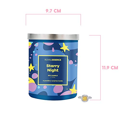 PROFUMO DI LUNGA DURATA: con un tempo di combustione fino a 90-100 ore e cera di soia di alta qualità, una candela Royal Essence è il modo perfetto per rendere la tua casa un po' più speciale. Profumi di qualità elevata che riempiranno ogni stanza della tua casa con l'aroma delle miscele e fragranze uniche di Royal Essence. Dopo aver acceso la candela, i gioielli inizieranno ad apparire dopo circa 10 ore di tempo di combustione.