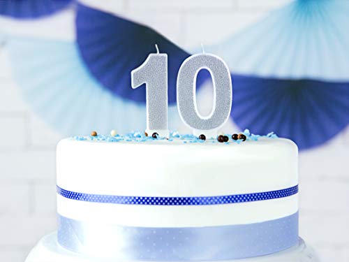 Candela numero 1 ARGENTO GLITTER - numerale h7cm argentata - Candelina per Torta e dolci - candela di compleanno in cera a forma di numero (1 Uno)