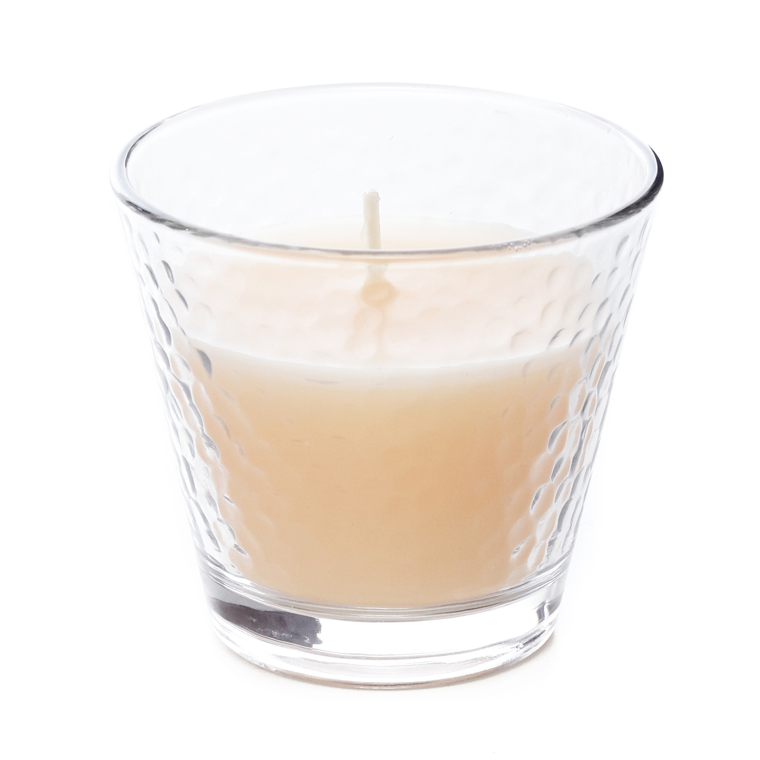 Crea un'atmosfera intima e accogliente in casa completando il tuo arredo con questa delicata candela color pesca. Completa di vasetto in vetro con raffinata superficie a rilievo, ti permetterà di illuminare la stanza con una piacevole luce soffusa senza far colare la cera sul tavolo. Perfetta per le tue serate di relax in casa, è il regalo ideale per chi ama riempire la casa di candele colorate. Dimensioni: 7x8 cm.