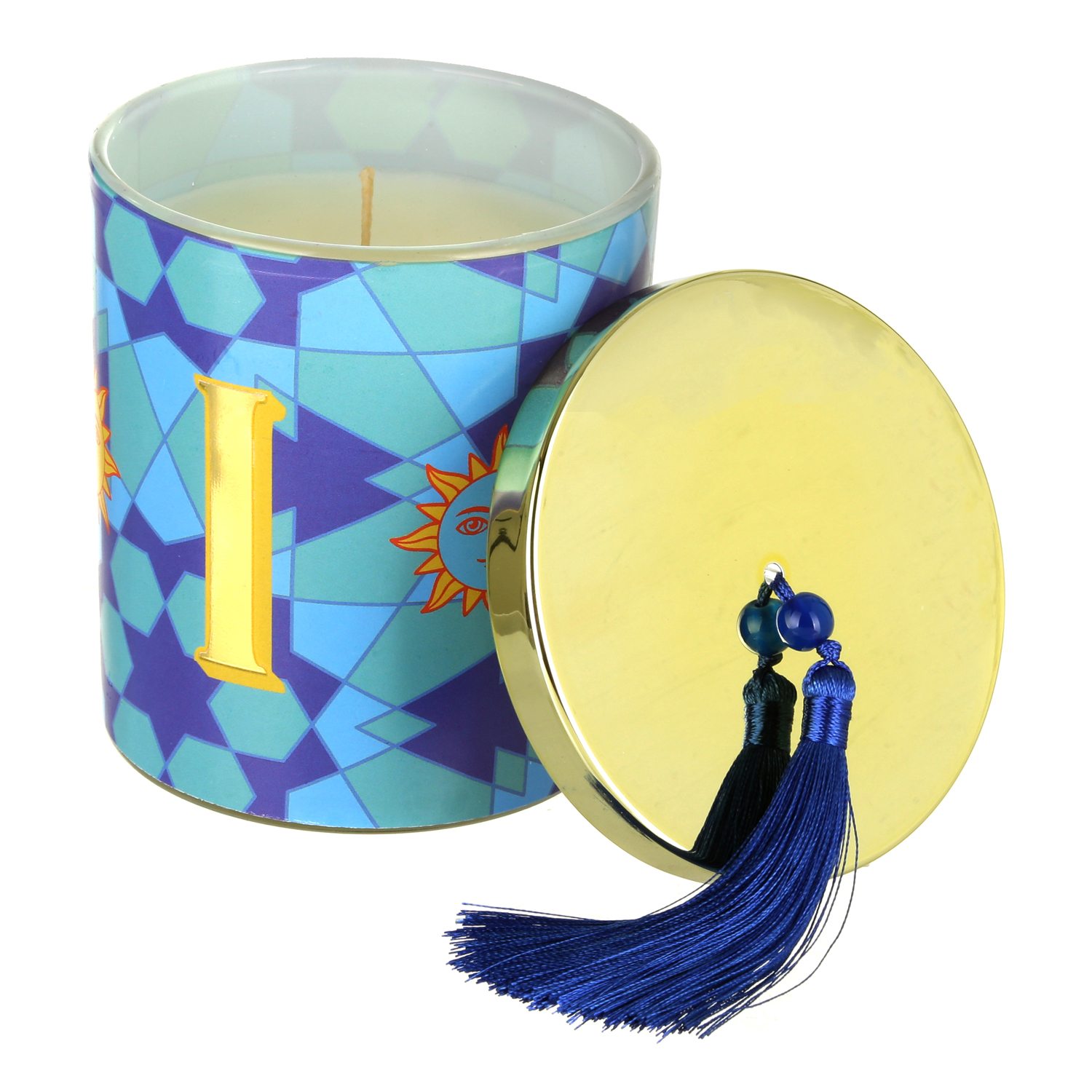 La linea di candele profumate firmate dalla designer Benny Setti è perfetta per portare il piacere dell'aromaterapia direttamente a casa tua. Il barattolo in vetro decorato a tema circo con lettera I, combinato a un coperchio dorato con nappina colorata, rende questa candela profumata un vero e proprio complemento d'arredo originale e alla moda. La sua fragranza ti accompagnerà nei momenti di puro relax cullandoti con fresche note legnose, ispirate all'ambra. Profumazione: Amber Wood. Dimensioni: 8x9 cm.