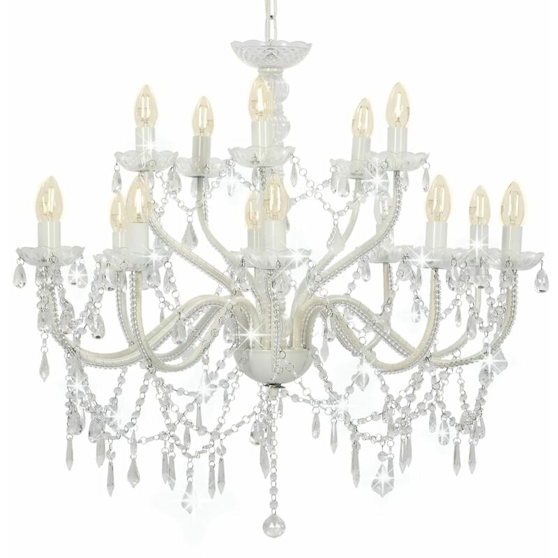 Caratterizzato da un design classico ed elegante, questo fantastico lampadario con cristalli e gocce scintillanti donerà sicuramente un aspetto audace ed attirerà l'attenzione all'interno della vostra casa. È adatto sia per uso residenziale che commerciale. La base a candelabro e le gocce trasparenti aggiungeranno un tocco di fascino antico e creeranno un bel gioco di luci. Potrete scegliere e installare lampadine E14 dai colori chiari, creando un'atmosfera di relax e riposo. Si prega di notare che le lampadine non sono incluse. Grazie agli accessori di montaggio inclusi, è possibile assemblare e installare la lampada a sospensione in modo facile e sicuro. Colore: Bianco (struttura) + trasparente (gocce) Dimensioni tavolo: 80 x 74 cm (Diametro x A) Materiale: Metallo (struttura) + acrilico (gocce) Alimentazione: 230 V Potenza massima lampadine: 40 W. Tipo di attacco: E14 Con 15 porta lampade Le lampadine non sono incluse