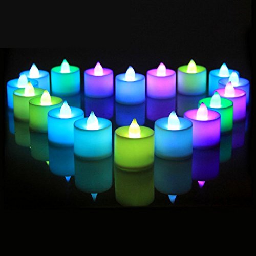 Set di 24 Candele LED a Batteria Senza Fiamma realistiche Luminose, luci da tè a LED - Candele elettriche False per votive, Feste da Tavolo, Feste di Compleanno, Matrimoni, luci Natalizie Multicolore