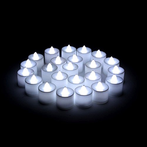 Set di 24 Candele LED a Batteria Senza Fiamma realistiche Luminose, luci da tè a LED - Candele elettriche False per votive, Feste da Tavolo, Feste di Compleanno, Matrimoni, luci Natalizie Bianco