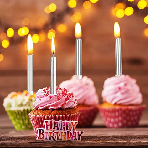 Candele di Compleanno,Candela per Torta,36pcs Candela Torta Argento,Candele Torta Compleanno,Candela per Torta in Metallo,Utilizzato per la Decorazione Della Festa Nuziale di Compleanno (d'argento)