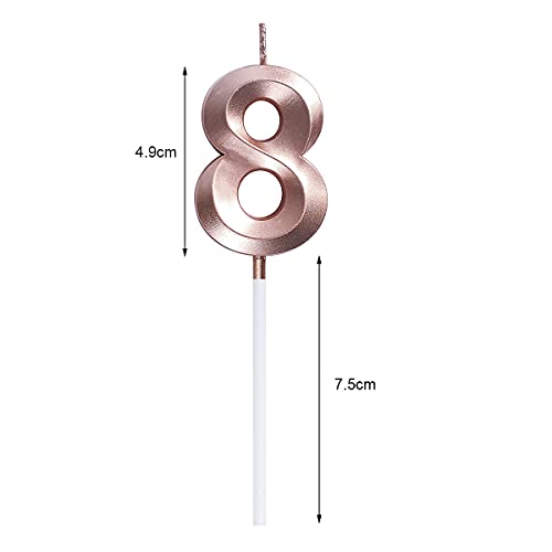 Candele di compleanno, a forma di numero 3D, dorate, glitterate, per torta di compleanno, 0, 1, 2, 3, 4, 5, 6, 7, 8, 9, decorazione per torte di nozze (oro rosa, 5)