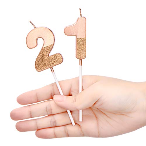 BBTO Candele di Compleanno 21 Glitter Candele di Numero per Torta Topper di Torta di Compleanno 21 Decorazione per Bomboniera di Compleanno Nozze Anniversario Matrimonio, Oro Rosa