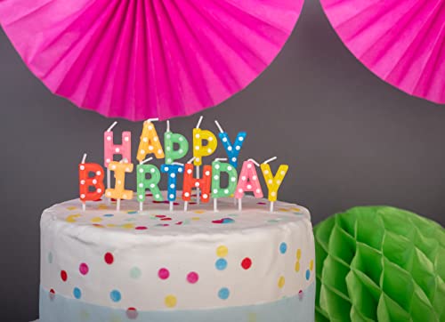 Le candele formano il testo "Happy Birthday" (lingua italiana non garantita). Candele colorate e originali per una fantastica torta di compleanno.