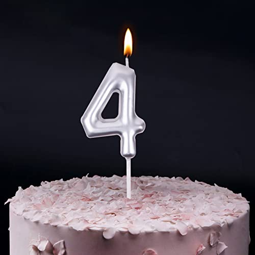 4 Anno Candele di Compleanno Numero 4, Candele di Compleanno d'argento, Adatto A Feste di Compleanno