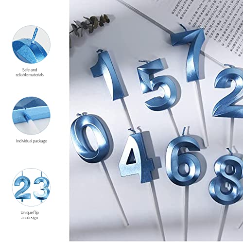 Candele di compleanno, numero di candele, 3D, numero 0, 1, 2, 3, 4, 5, 6, 7, 8, 9, decorazione per torte con glitter blu, per feste di compleanno, anniversario di matrimonio, laurea (7)