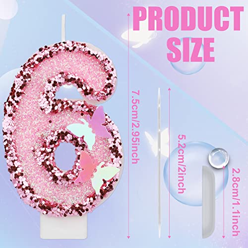 8 X 5 cm Candele di Compleanno Numero, Candele Numeri Torta Rosa Glitterato Cake Topper Candele di Compleanno a Farfalla con Paillettes per Forniture per Feste di Anniversario (Numero 6)