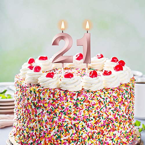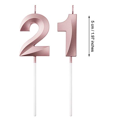 Candele di 21° Compleanno Numero Candele di Torta Decorazione Torta Topper di Buon Compleanno per Nozze Anniversario Celebrazione Forniture, Oro Rosa