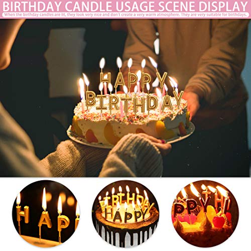 【Il pacchetto include】 Riceverai 1 scatola di candele dorate a forma di lettera della torta di compleanno ("BUON COMPLEANNO", ogni lettera ha 1 pezzo), C'è anche un bellissimo striscione di buon compleanno.questo set di candeline colorate è per persone di tutte le età, dai bambini agli adolescenti e agli adulti.