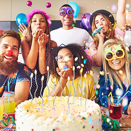 12 Candele di Compleanno Torte Candele Torta a Spirale Candele Cupcake Torta Metallo Candele Torta Lunghe Sottile con Supporti (Argento)