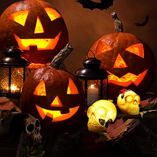 Candele Cranio per Lumini a LED,3 Pezzi Halloween Lampada a Forma di Teschio con Luci da tè a Batteria,Candela Luminosa Senza Fiamma Realistica Elettrica Modello,per Feste Casa Decorazioni