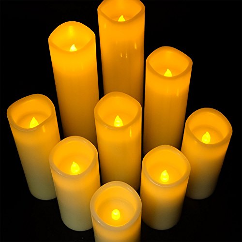 Candele in vera cera Eldnacele avorio candele LED a batteria con timer e telecomando per festa di nozze bar e decorazione domestica, cera, Set of 9
