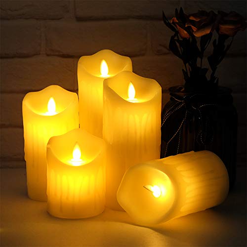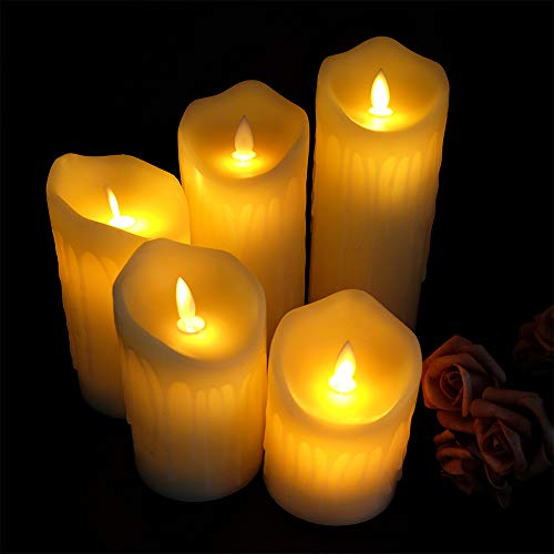 Set di 5 candele candele fiamma danzante Eldnacele avorio in vera cera, con timer e telecomando per compleanno matrimonio bar e decorazione domestica Dripping Finish