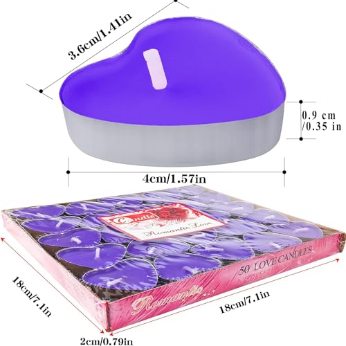 50 candele a forma di cuore, romantiche candele profumate, senza goccia e senza fumo, a lunga durata, per l'umore, decorazione romantica, piscina, matrimonio, anniversario (viola)