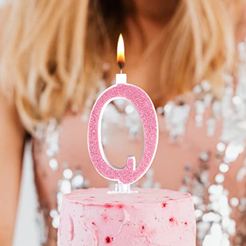 Candele rosa glitterate per torta con numero di candele, candele di compleanno, feste, matrimoni, anniversari, altezza 9 cm, numero 0