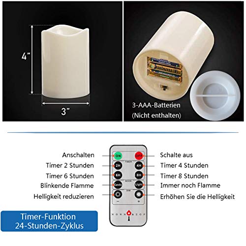 Telecomando con funzione timer a 10 pulsanti per regolare la luminosità della candela e le candele con funzione timer di 2/4/6/8 ore che cambia ogni 24 ore. Risparmia l'accensione e lo spegnimento manuale delle candele elettriche.