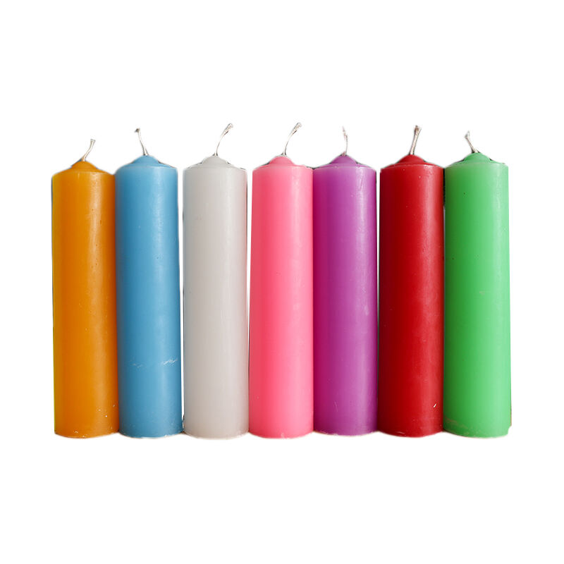Modello: colore candele Materiale: paraffina Specifiche: rosso/bianco/giallo/blu/viola/rosa/verde Altezza: 20cm Diametro: 5cm Peso netto: circa 330 grammi
