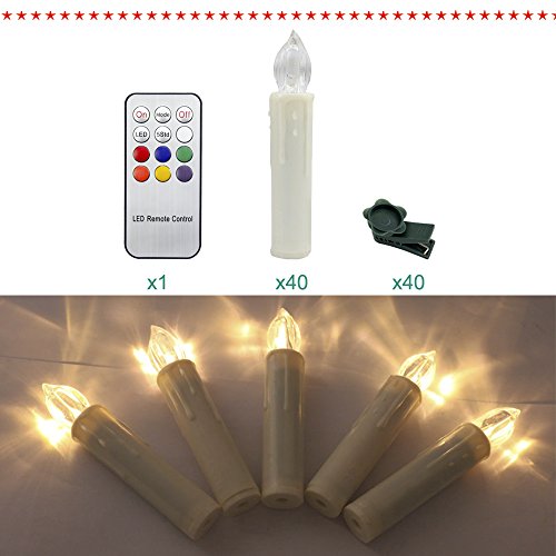 HJ® Candele di Natale a LED per albero di Natale, senza cavi e senza fiamma, con telecomando, colore della luce: bianco caldo, a infrarossi