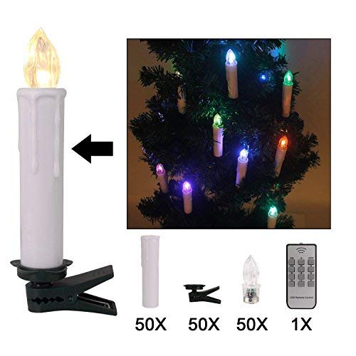 50x Candele a LED Natale con Telecomando per Natale Festa Candele IR Senza Fili RGB e Bianco Caldo