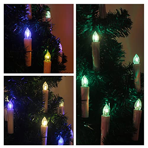 Diversi effetti luminosi: il colore della luce è bianco freddo e RGB (rosso, blu, verde, arancione, giallo, viola e poi di nuovo bianco freddo). Sembrano molto naturali come le vere candele. Con effetti lampeggianti come luce costante, veloce sfarfallio e lentamente regolabile. Il telecomando consente di impostare facilmente il colore e la modalità per diverse occasioni e ambienti.