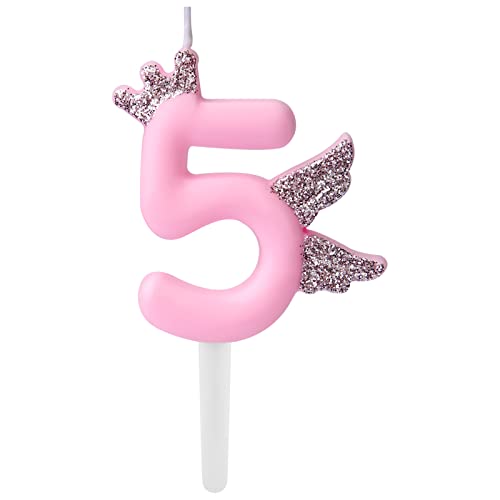 6,5 cm Candele Numeri Grandi, 0-9 Candela con Numero Rosa Glitterato Candele di Compleanno Topper per Torta Candele a Forma di Numero per Bambina Anniversario Matrimonio Festa (Numero 5)