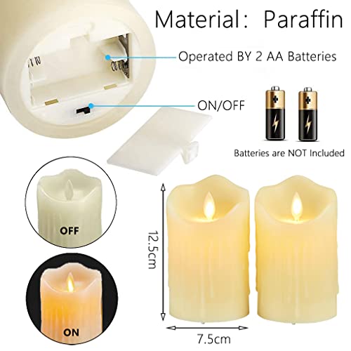 Candele LED 2 pezzi Candela LED con Fiamma Tremolante Candele a Batteria Candela con Telecomando a 10 Tasti Funzione Timer Realizzato in Vera Paraffina con Gocce Cera Candela Decorazione-12.5cm