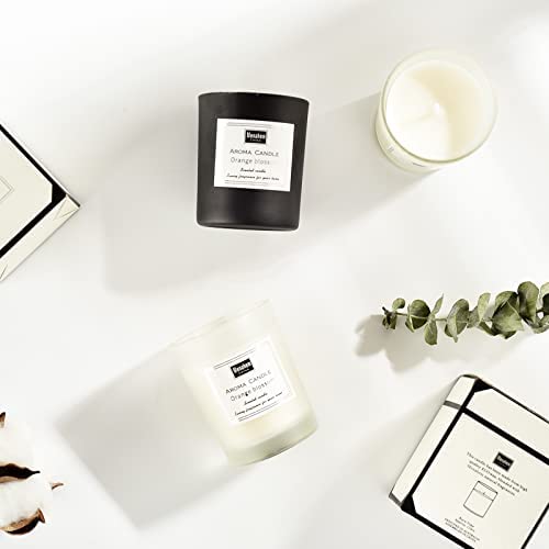Le candela profumata sono realizzate con cera di soia naturale ed ecologica e il 7% di oli essenziali e stoppino in cotone senza piombo. Le candele bruciano in modo più pulito senza fumo nero e bruciano in modo più uniforme.