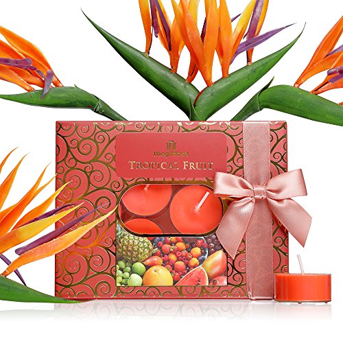 Candele profumate, set regalo con 24 candele profumate, ideali per donne, per lei, regali per lei, include 1 x 12 bacche di peluche e 1 x 12 frutta tropicale