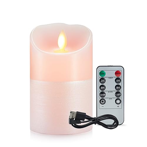 Candele LED, Ricaricabile Candele, Batteria LED Candele, Rosa Candele Flickering Flameless, Candela LED USB con Telecomando e Timer per Festa, Vacanze, Partito, Matrimoni, Hotel Decorazione-12.5cm
