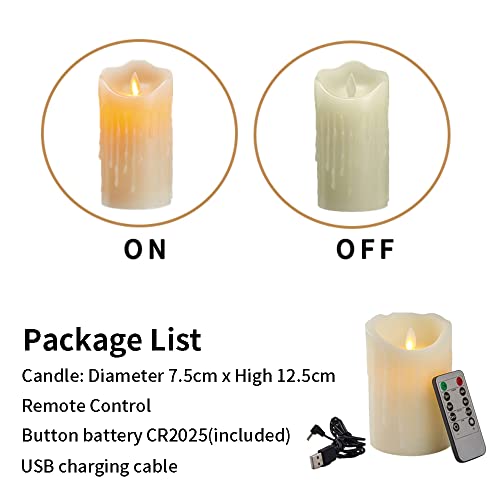 Candele LED, Candele Ricaricabile con Cavo di Ricarica USB, 12.5cm Flickering Flameless Candele Pilastro LED in Vera Cera con Telecomando & Funzione Timer, Candela LED Ricaricabile USB-Avorio