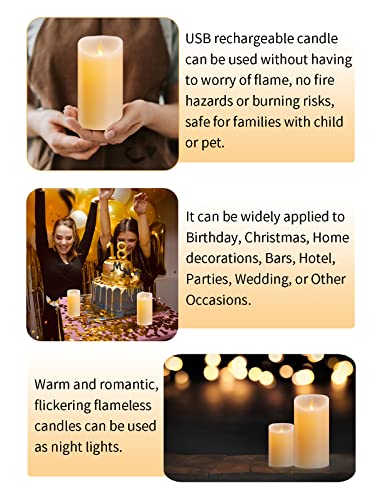 Candele LED, Candele Ricaricabile con Cavo di Ricarica USB, 12.5cm Flickering Flameless Candele Pilastro LED in Vera Cera con Telecomando & Funzione Timer, per Decorazione di Partito Matrimoni-Avorio