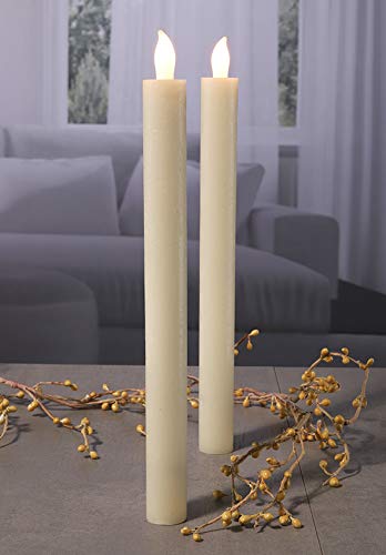 Set di 4 candele a LED in vera cera, romantiche e dalla luce tenue, in bianco/da tavolo/a bastoncino - altezza 23 cm - funzionamento a batteria - Set di candele a LED in vera cera - decorative e a risparmio energetico, tecnologia LED con un pratico interruttore on e off per ogni singola candela - candela tremolante - per interni