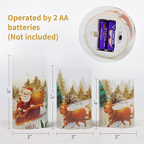 Candele Senza Fiamma Babbo Natale in Vetro con Timer 6H, Candele a LED con Telecomando, Set di 3 Candele a Batteria a Colonna Candele Natalizie a Luce Bianca Calda per Decorazioni Natalizie