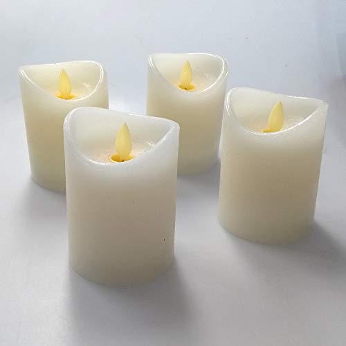 ToCi - Set di 4 candele a LED in vera cera, senza fiamma, con luce mobile e timer, colore: crema Crema - Ø 7,5 x 10 cm.