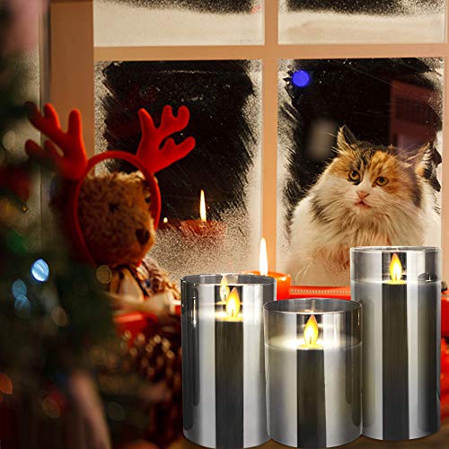 Il set di candele senza fiamma realistiche viene fornito con 3 candele a colonna (4" 5" 6"). Adotta la tecnologia della fiamma tremolante, lo stoppino si muove come vere candele di cera creando un incantevole bagliore caldo.